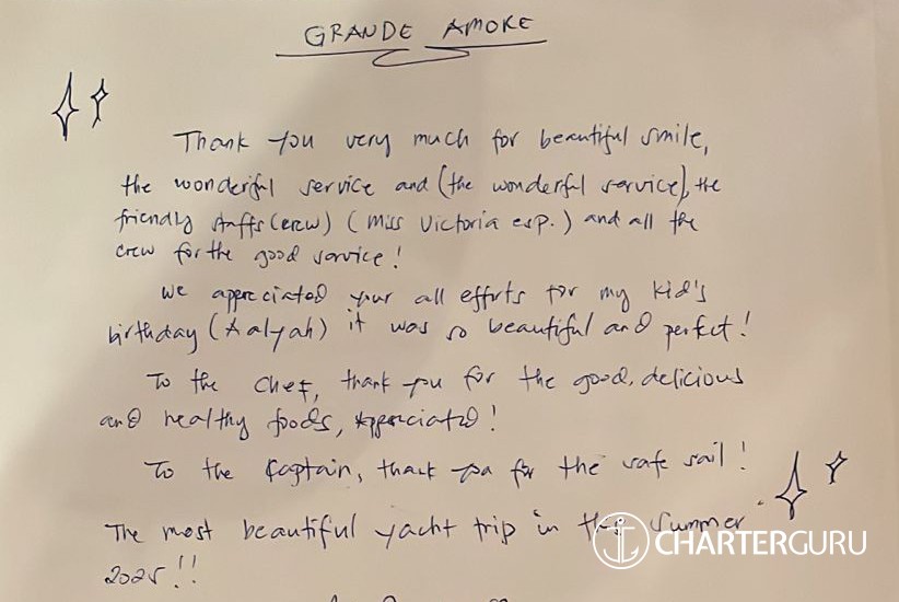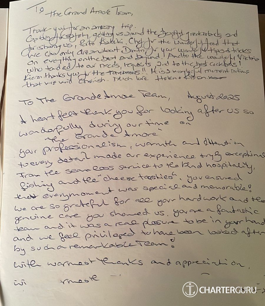 A heartfelt thank you for looking after us so wonderfully during our time on the Grande Amore.