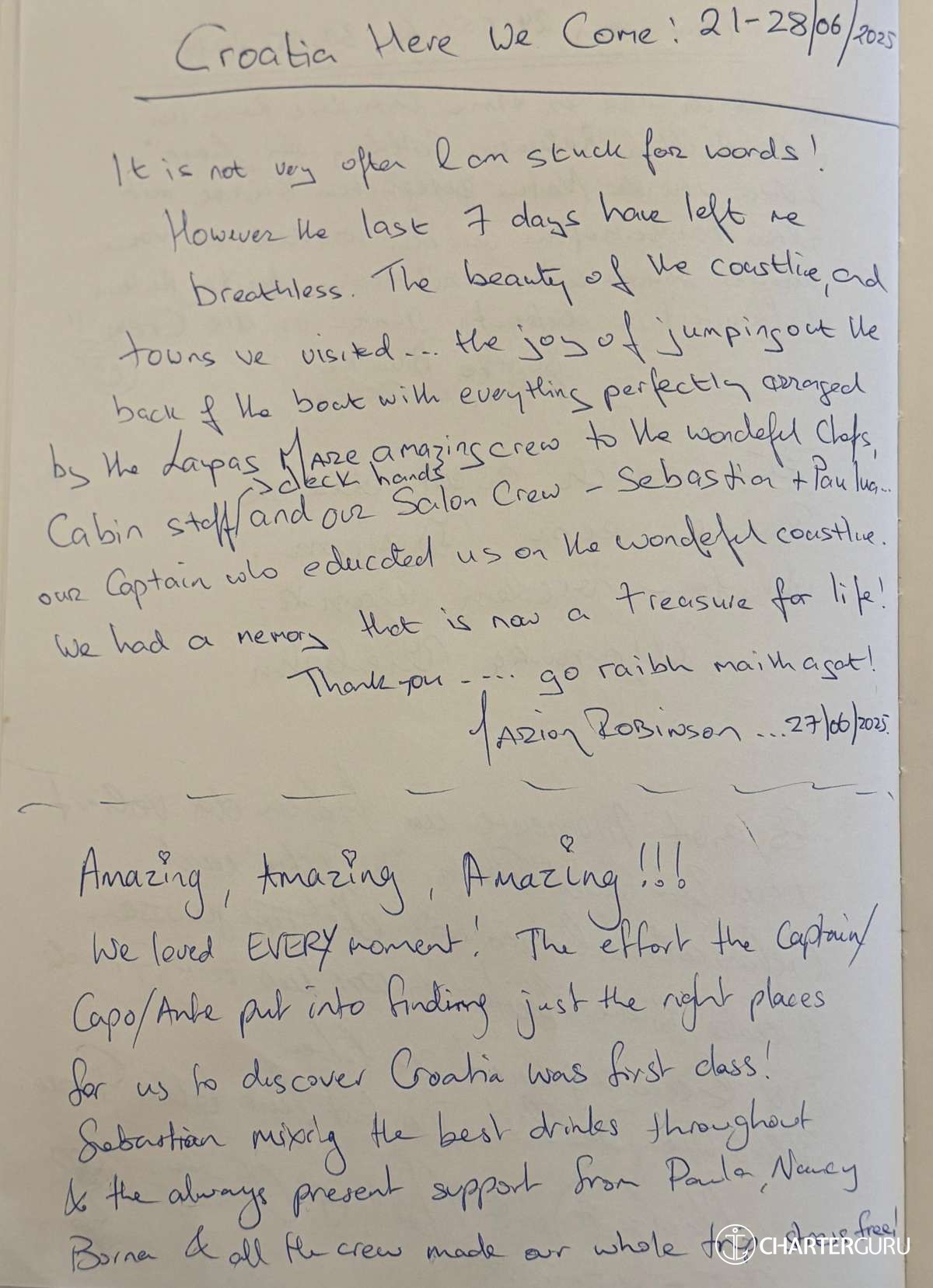 “Lupus Mare Crew - thank you for the wonderful service