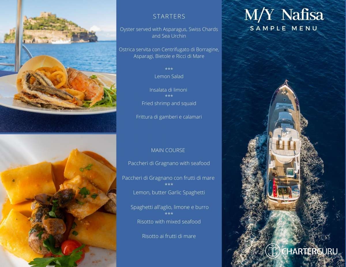 Her communication skills and proven experience allowed her to join and form a great team aboard Nafisa, delivering high standards of service to guests aboard. Italian mother tongue, she fluently speaks English and French.
