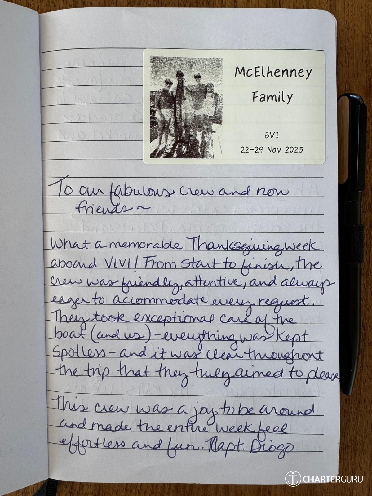 What a memorable Thanksgiving week aboard VIVI! From start to finish, the crew was friendly, attentive, and always eager to accommodate every request. They took exceptional care of the boat (and us) – everything was kept spotless – and it was clear throughout the trip that they truly aimed to please.