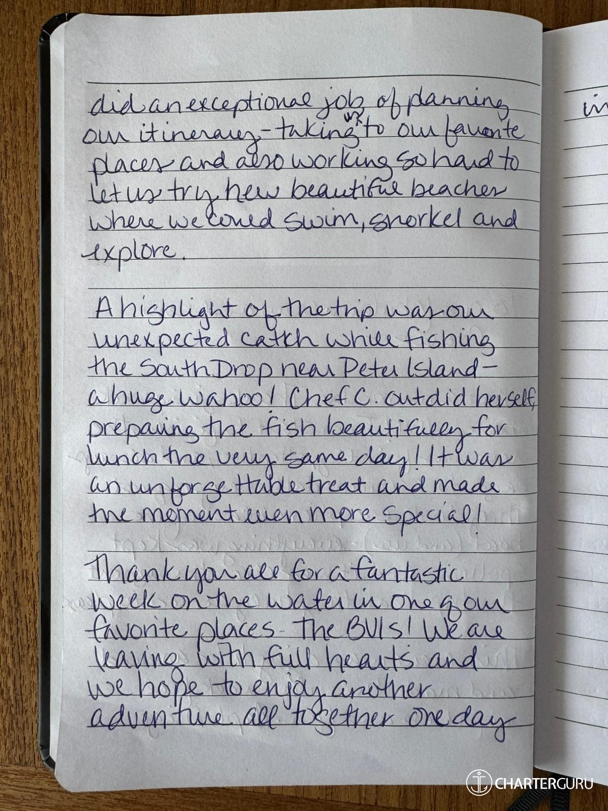 This crew was a joy to be around and made the entire week feel effortless and fun. Capt. Diego did an exceptional job of planning our itinerary – taking us to our favorite places and also working so hard to let us try new beautiful beaches where we loved to swim, snorkel and explore.