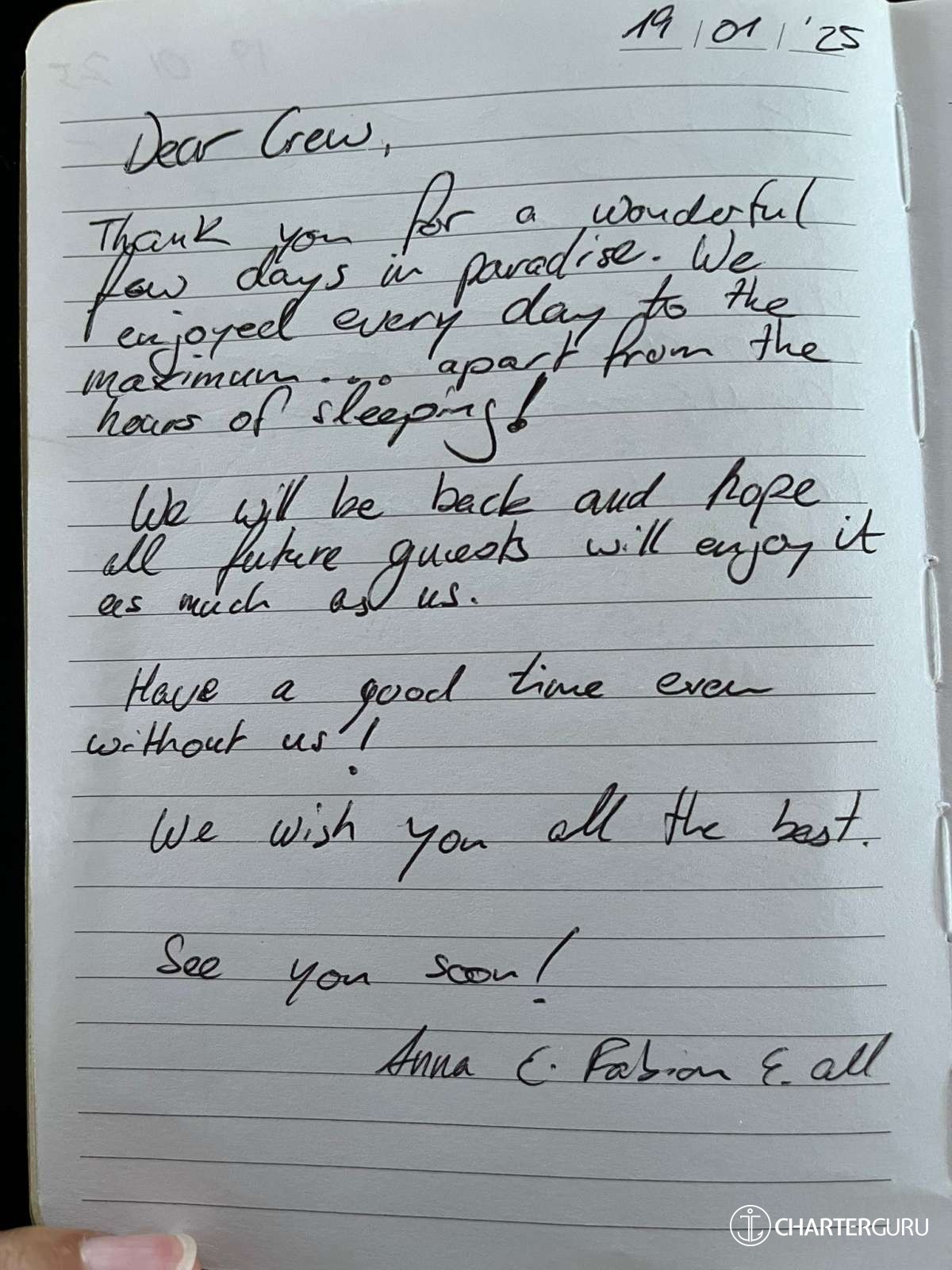 Thank you for a wonderful few days in paradise. We enjoyed every day to the maximum… apart from the hours of sleeping!
